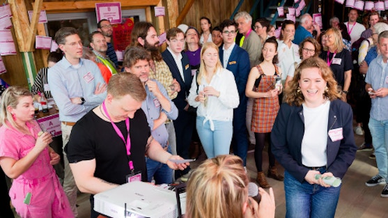 Wat een geweldig jubileumfeestje vierden we donderdag 23 mei! De 20e editie van de Utrechtse Beursvloer was een hele gezellige ÃĐn productieve middag! Met een heel mooi eindresultaat: matches ter waarde van âŽ58.130,- / 578 uur. Dank aan alle enthousiaste aanwezigen, Reinaerde voor de catering, NAR CafÃĐ der Kunsten voor de gastvrijheid, de Utrechtse Uitdaging voor de samenwerking, collega Rosalie voor het enthousiaste dagvoorzitterschap ÃĐn Joris Louwes voor de prachtige foto's. Binnenkort vind je nog veel meer foto's op onze website!