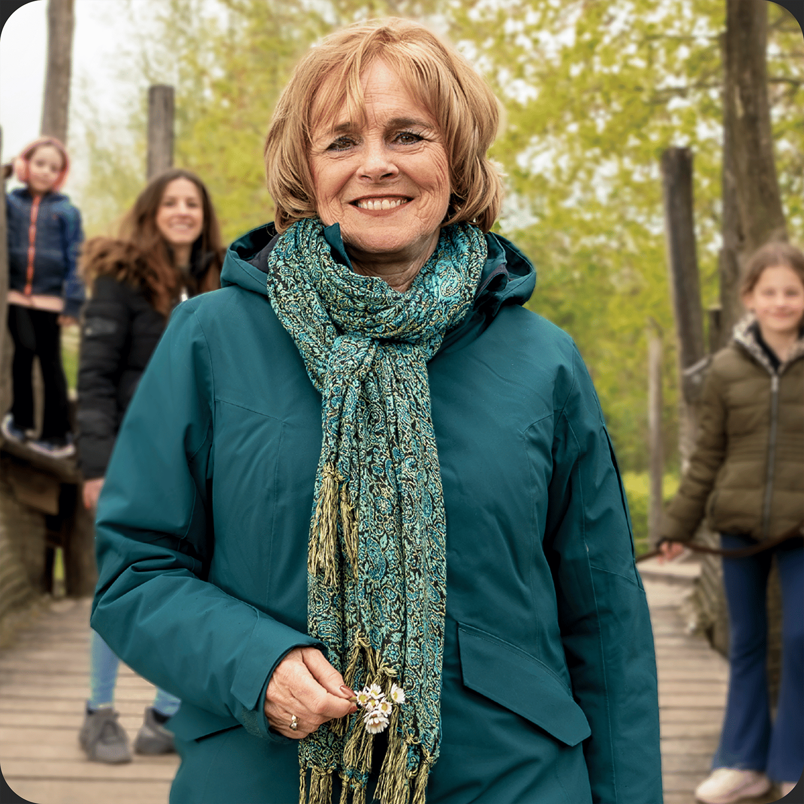 Jenny Buiten (74 jaar) woont met haar man in een oud schoolgebouw met prachtige binnentuin in hartje Utrecht. Ze heeft twee kinderen en drie kleinkinderen. Ze houdt van lezen, speelt accordeon en is gek op tuinieren. Ze heeft een moestuin met haar dochter en schoonzoon.