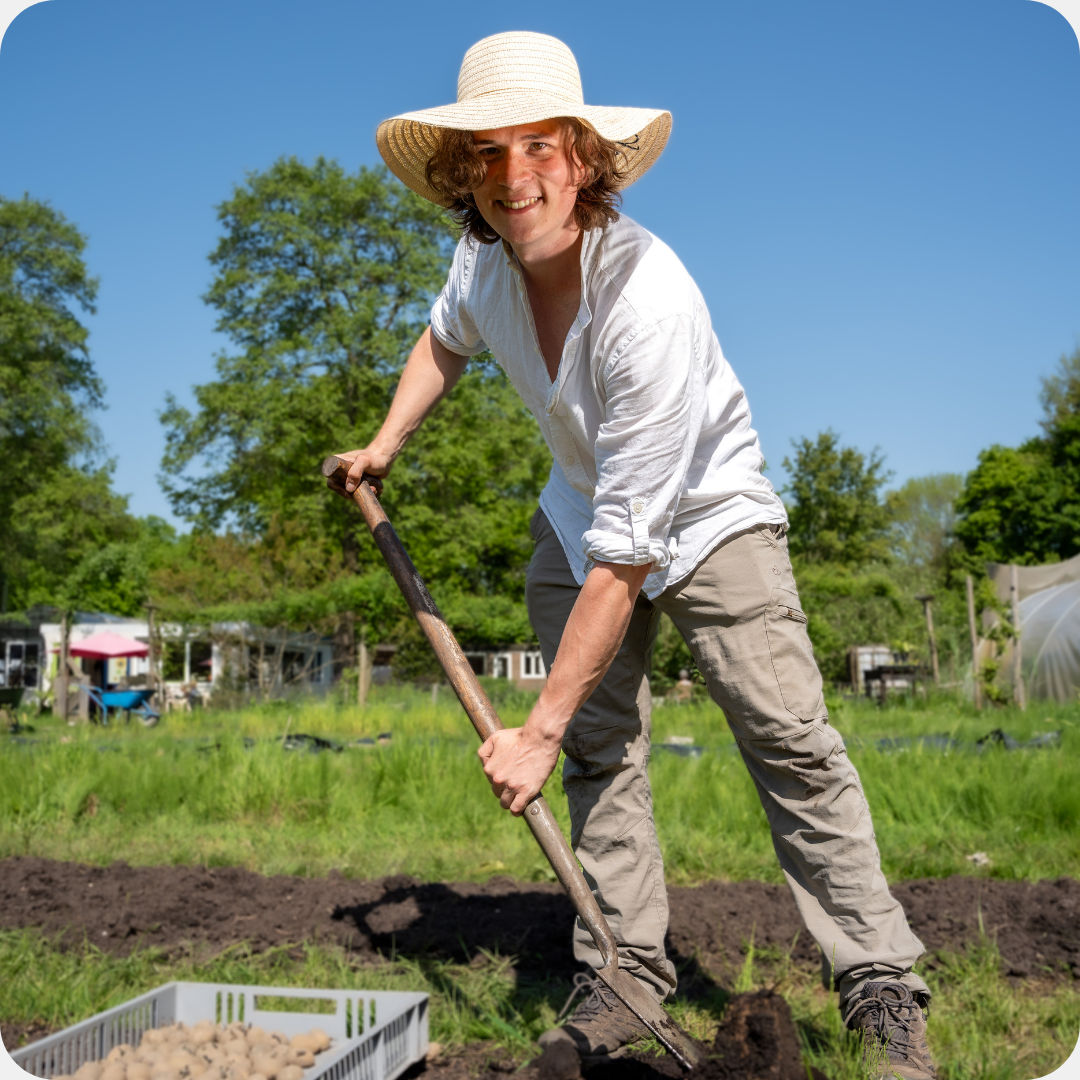 Michiel is regelmatig te vinden in Stadstuin Food for Good. Hij tuiniert, klust, kookt en pakt allerlei klussen op die er liggen.